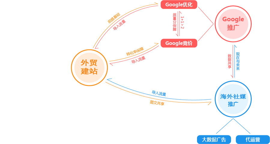厦门外贸推广公司为您提供全面的“整合”方案,为您的企业提供全生命周期的精细化服务和咨询。为此,我们搭建了从广告投放到SEO优化,从内容运营到网站开发,从品牌策划到电商运营的近100人的团队,组成了一家集全球渠道资源、人才资源、技术资源为一体的数字营销机构,为您一站式解决出海难题,实现品牌全球推广!